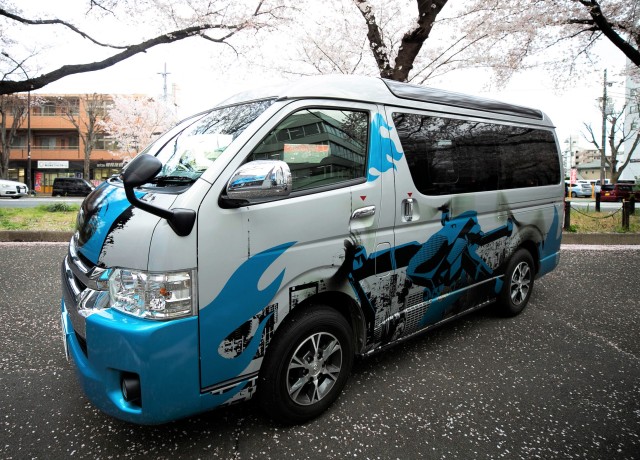 - ビギナーでもハイエースサイズで運転楽々!ポップアップ(屋根があがります!)で広々空間キッチン、冷蔵庫完備